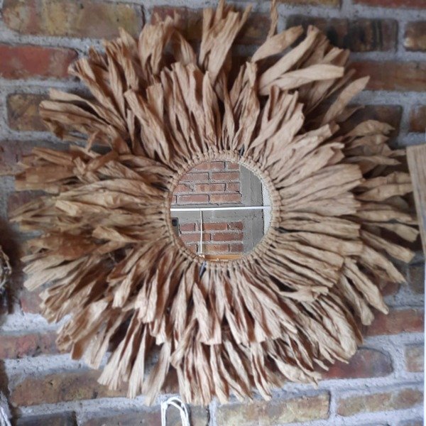 Espejo Sol, realizado en hierro con flecos hilo kraft