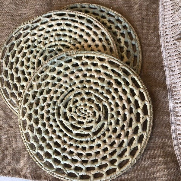 Plato sitio tejido fibra natural de Palma de Caranday por artesanos del Norte Argentino, en una labor que va pasando de generación en generación.
